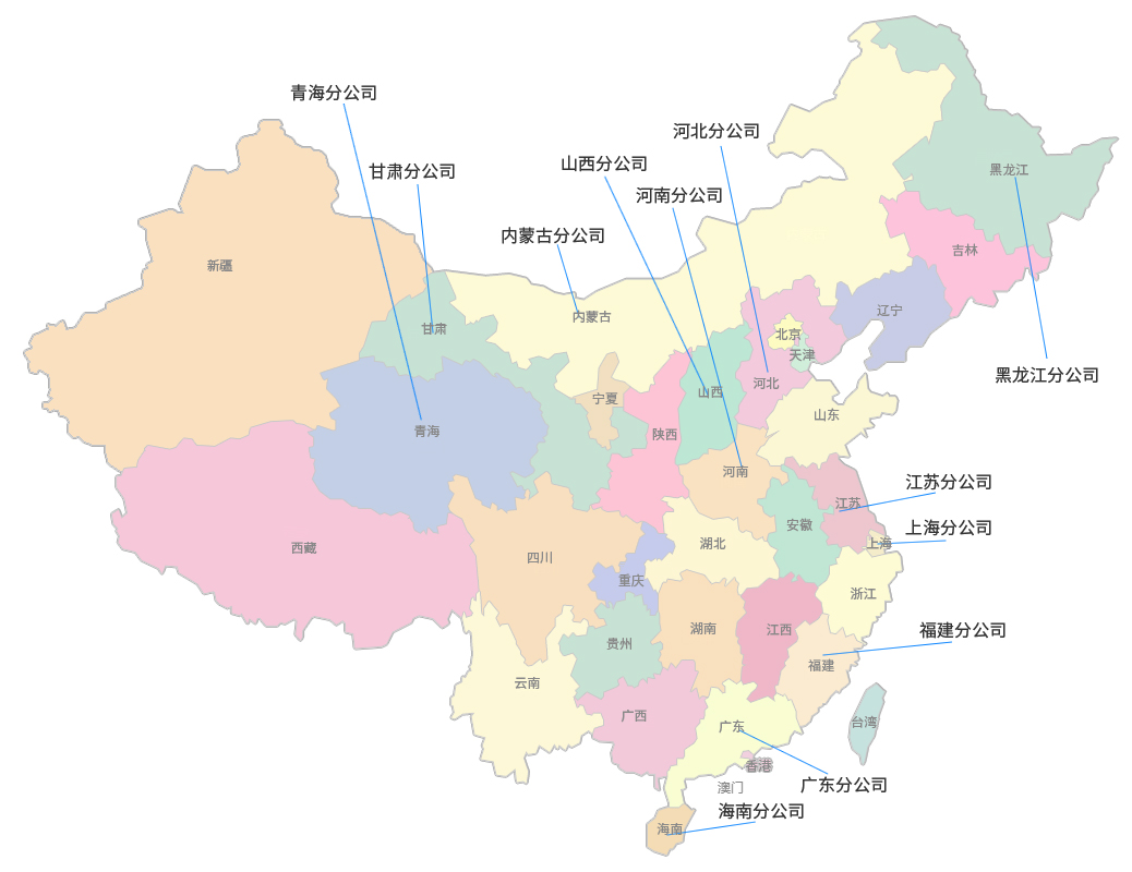 截至目前,公司業務布局遍及省內16個地市,并立足上海、江蘇、廣東、青海、福建、甘肅、內蒙古等若干省份(自治區)。
