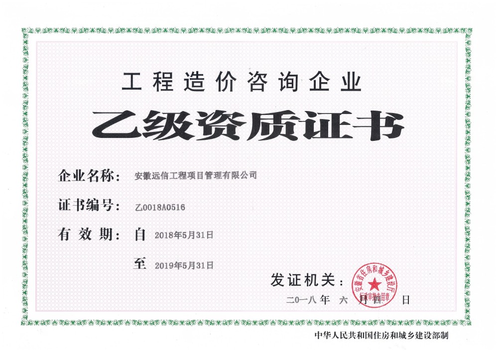 公司開辟業務新領域 發布時間:2018-06-07 閱讀量:1624 近日,經省住房和城鄉建設廳審批核準,公司順利取得工程造價咨詢乙級資質。該項資質的順利取得,將為公司向全過程工程咨詢領域拓展提供有力支撐,使企業綜合實力得到進一步增強。 上一篇:省委常委、秘書長陶明倫蒞臨我公司監理項目指導下一篇:巢湖市市委書記耿延強蒞臨巢湖二中新校區項目調研