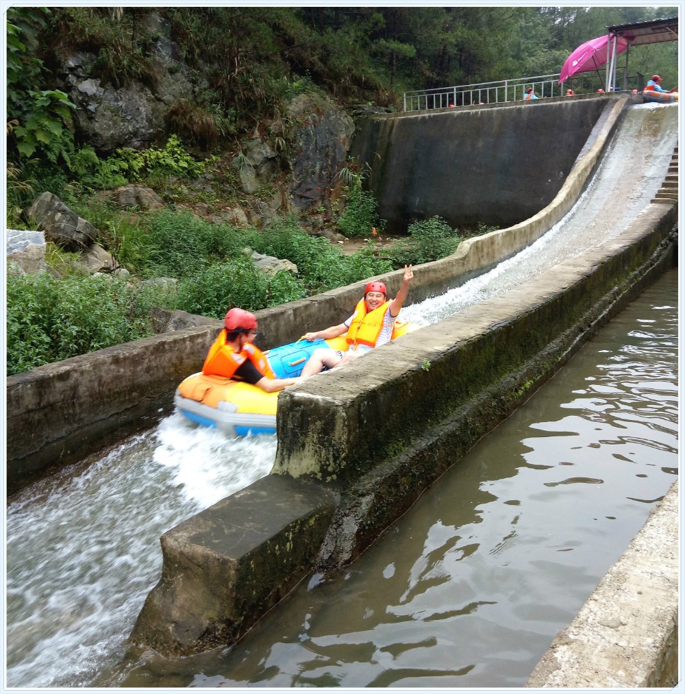 孔子云:“仁者樂山,智者樂水”。不過,你如果問一般人是樂山還是樂水,所得的回答多半是山水都樂。所以,游覽完天柱山,第二天的行程就是體驗驚險刺激的畢升大峽谷漂流。畢升大峽谷位于湖北黃岡,漂流景區兩岸懸崖峭壁陡立,山巒跌宕,水道漫長險峻,其總落差達288米。大家在天光云影間、在旖旎風光里,戲水打鬧、好不愜意。