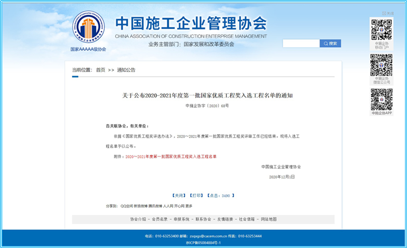 據悉,國家優質工程獎設立于1981年,是經國務院確認的我國工程建設領域設立最早、規格最高、跨行業、跨專業的國家級質量獎,由中國施工企業管理協會在省級申報、推薦的基礎上,經材料初審、現場復查、綜合評定、審定、社會公示等嚴格的評審程序最終評出。