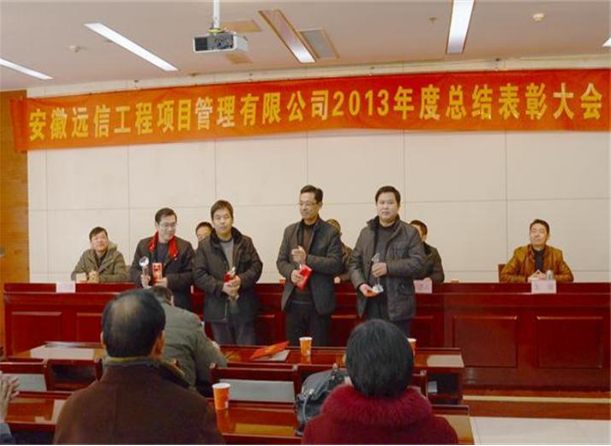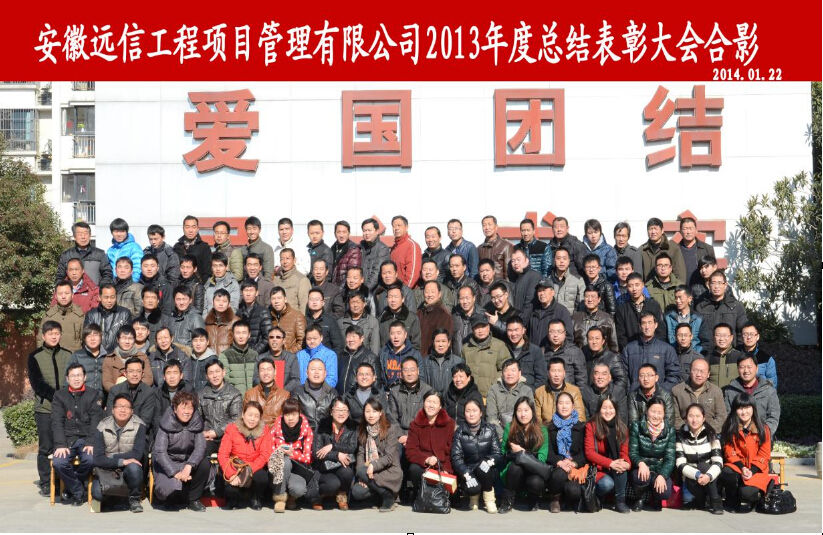 2014年1月22日,公司2013年度總結(jié)表彰大會在黃山大廈同心苑花園酒店隆重召開。董事長余松林、總工程師郝傳山、副總工程師任明德列席會議,常務(wù)副總經(jīng)理朱敏主持會議。公司管理人員、總監(jiān)、總監(jiān)代表以及監(jiān)理人員代表共140余人參會。